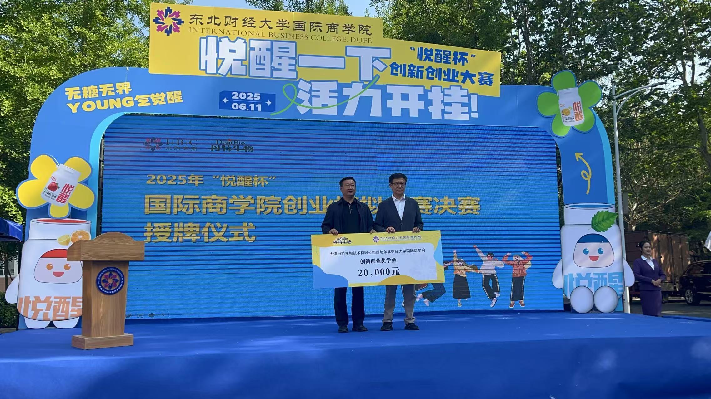 6月11日,东北财经大学国际商学院与大连丹特生物技术有限公司(以下简称“丹特生物”)校企合作签约暨无糖无界YOUNG气觉醒2025年“悦醒杯”创新创业大赛决赛颁奖仪式在东北财经大学隆重举行。丹特生物向大赛捐赠2万元创业基金,并正式挂牌成为东北财经大学国际商学院合作实习实践基地。丹特生物董事长赵玉国受聘为东北财经大学国际商学院校外导师,双方将进一步深化产学研合作,共同培育高素质创新创业人才。